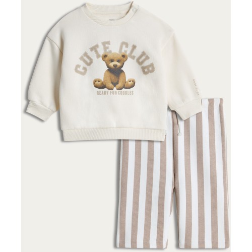2-Piece Cotton Rich Bear Sweatshirt and Joggers Set in Neutral