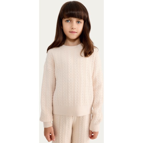 F&F Girls 2-Piece Cable Knit Jumper and Trousers Set in Cream