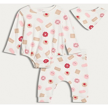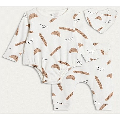 3-Piece Cotton Rich Breakfast Time Bodysuit Leggings and Bib Set in White