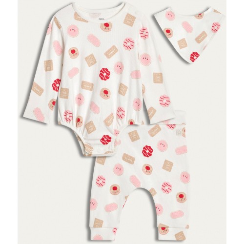 3-Piece Cotton Rich Biscuit Bodysuit Joggers and Bib Set in Pink