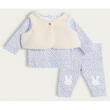 3-Piece Cotton Rich Top Legging and Gilet Set in Blue