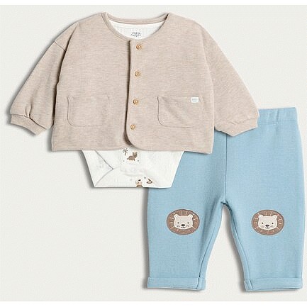 3-Piece Cotton Rich Animal Cardigan Bodysuit and Leggings Set in Neutral