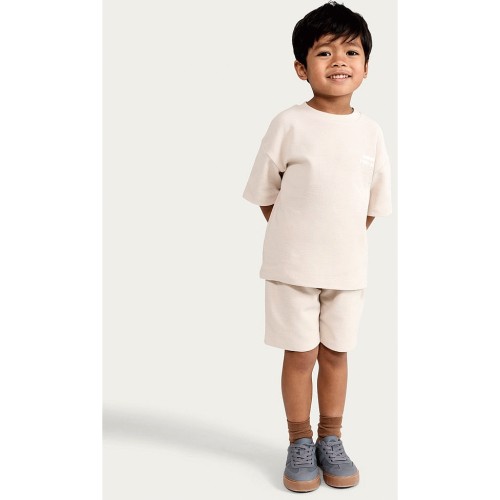 F&F Boys 2-Piece Cotton Rich Waffle Textured T-Shirt and Shorts Set in Stone