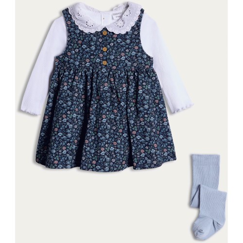 3-Pack Floral Print Dress Bodysuit and Tights Set in Blue