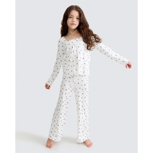 Girls 3-Piece Floral Print Pyjamas Set in Multi