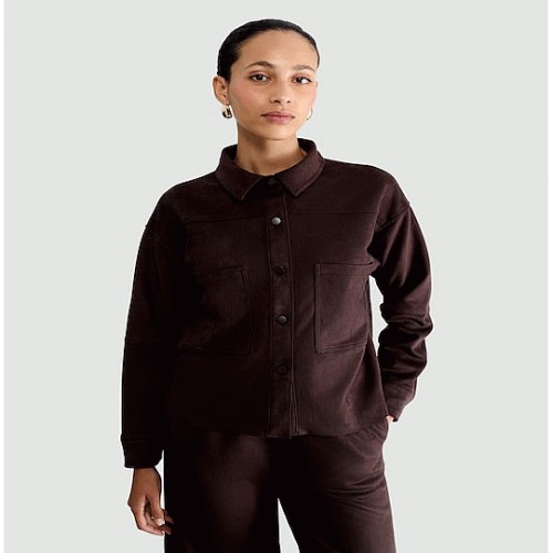 Faux Suede Collared Co-ord Shirt in Brown