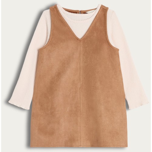 F&F Girls 2-Piece Suede Pinafore Dress and Top Set in Med Nude
