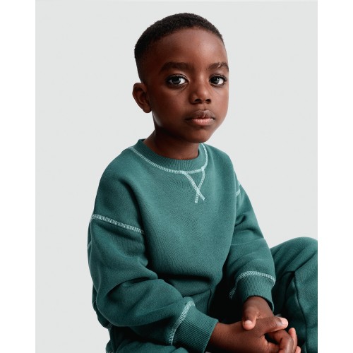 F&F Boys 2-Piece Cotton Rich Contrast Stitch Sweatshirt and Joggers Set in Green