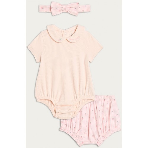 3-Piece Cotton Rich Bodysuit Bloomers and Headband Set in Pink