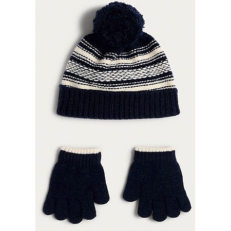 Boys 3-Pack Knitted Snood Gloves and Hat Set in Navy