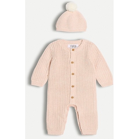2-Piece Knitted Romper and Hat in Multi Pink