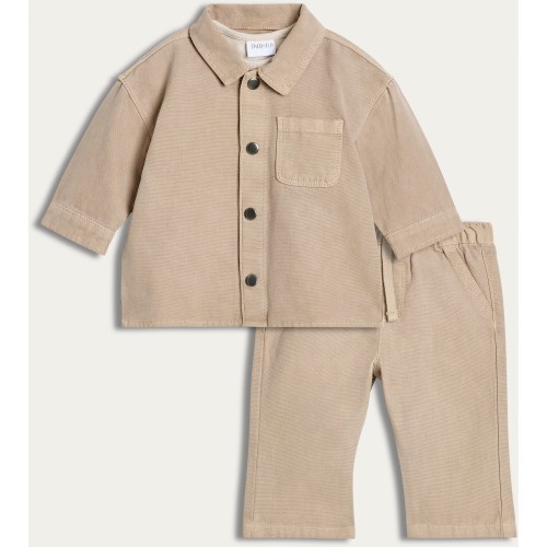 3-Piece Cotton Rich Shirt Top and Trousers Set in Stone