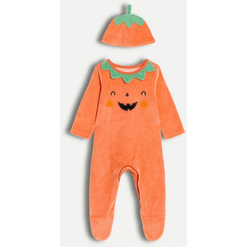Cotton Rich Velour Textured Pumpkin Outfit in Amber