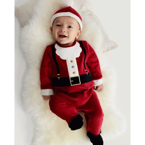 2-Piece Cotton Rich Fleece Santa Outfit in Red