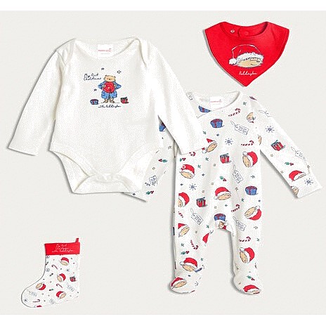 Paddington 4-Piece My First Christmas Pure Cotton Bodysuit Sleepsuit Bib and Stocking Set in White