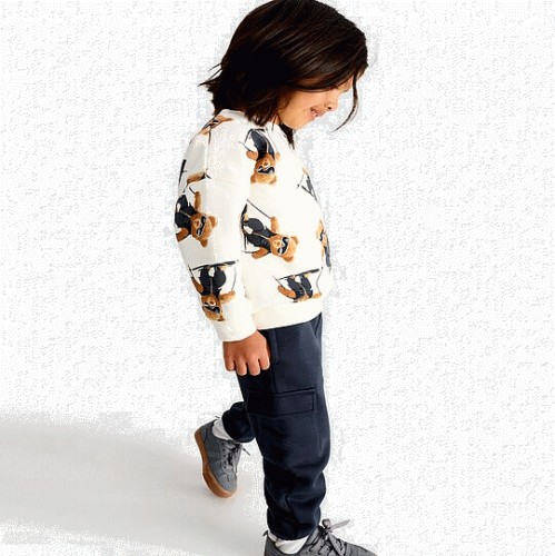 F&F Boys 2-Piece Cotton Rich SKiing Bear Sweatshirt and Joggers Set in Cream