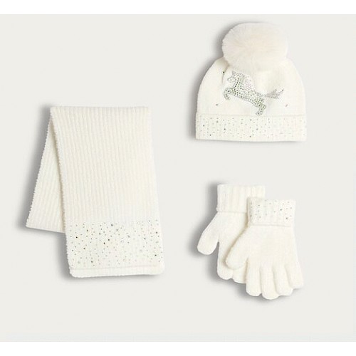 Girls 3-Piece Knitted Unicorn Hat Scarf and Gloves Set in White