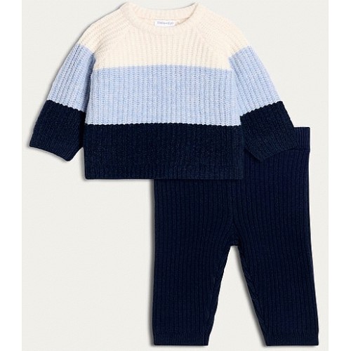 F&F Baby 4-Piece Knitted Stripe Jumper Leggings Hat and Socks Set in Multi Blue
