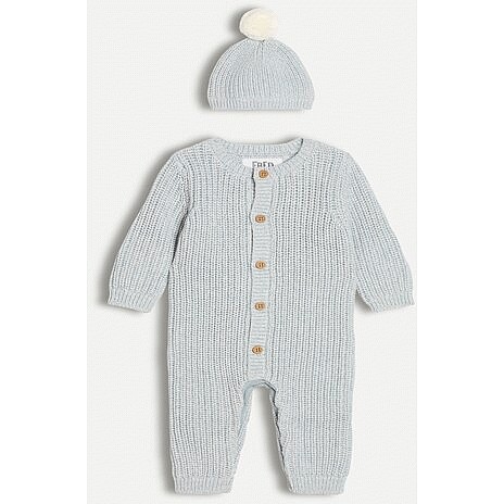 2-Piece Pure Cotton Knitted Romper and Hat Set in Blue