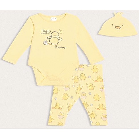 That's Not My 3-Piece Pure Cotton Chick Print Bodysuit Leggings and Hat Set in Yellow