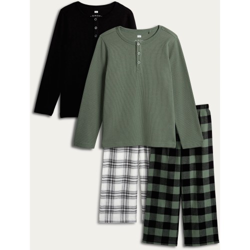 Boys 4-Piece Pure Cotton Henley Top and Bottoms Pyjama Set in Multi