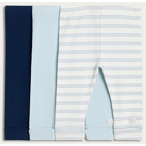 3-Pack Cotton Rich Ribbed Leggings in Blue