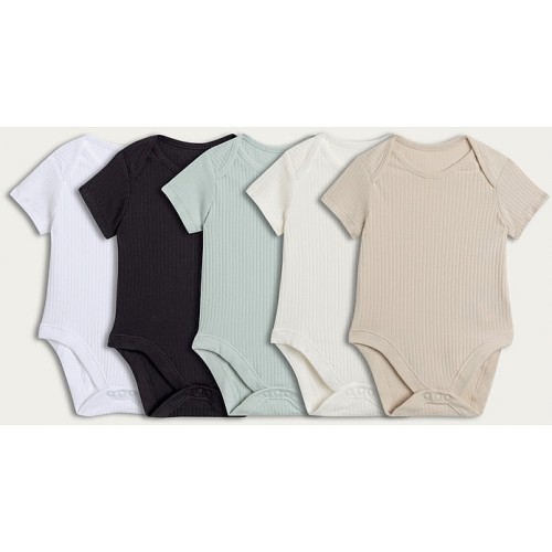 5-Pack Cotton Rich Ribbed Bodysuits in Multi