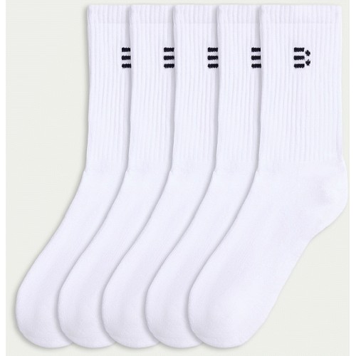5-Pack Cotton Rich Ribbed Crew Socks in White