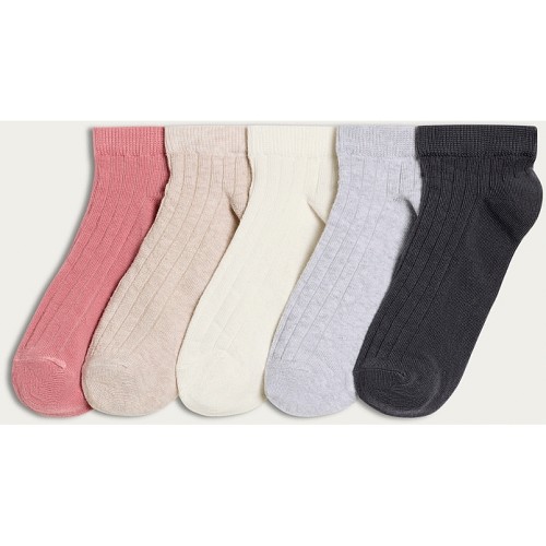 5-Pack Cotton Rich Ribbed Trainer Socks in Pink