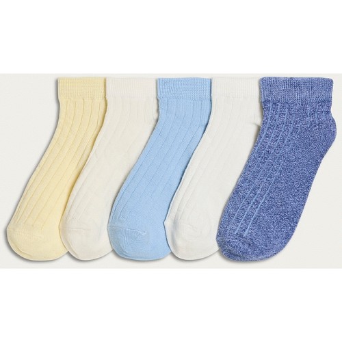 5-Pack Cotton Rich Ribbed Trainer Socks in Blue