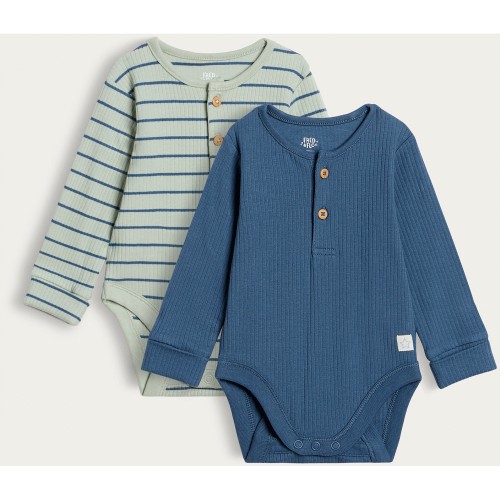 2-Pack Cotton Rich Ribbed Bodysuits in Blue