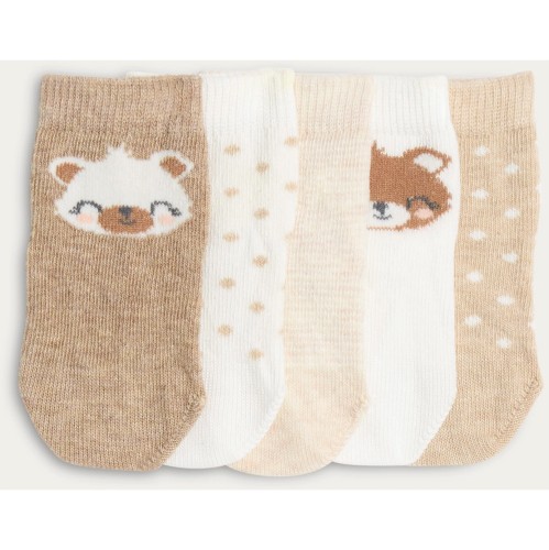 Baby 5-Pack Cotton Rich Autumn Animal Ankle Socks in Multi