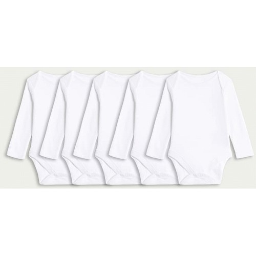 5-Pack Pure Cotton Long Sleeved Bodysuits in White