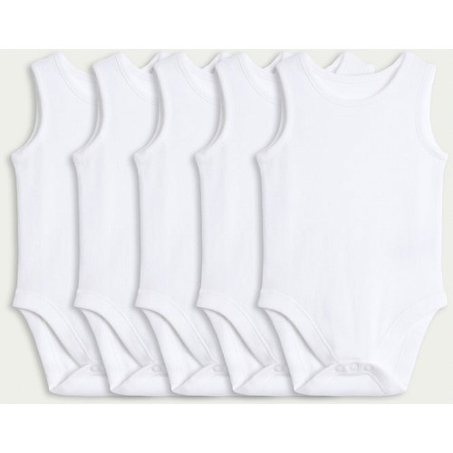 5-Pack Pure Cotton Sleeveless Bodysuits in White