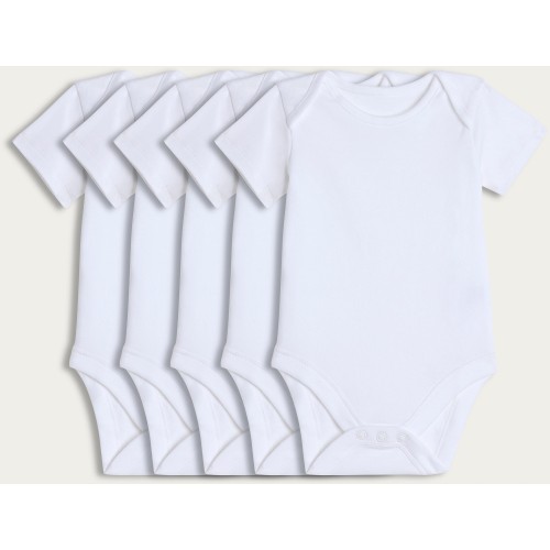 5-Pack Pure Cotton Short Sleeved Bodysuits in White