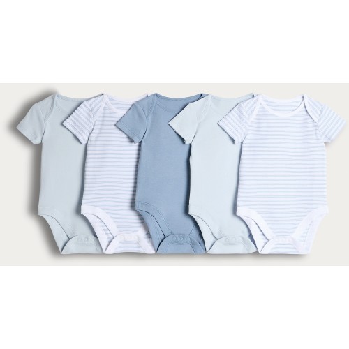 5-Pack Pure Cotton Short Sleeved Bodysuits in Blue