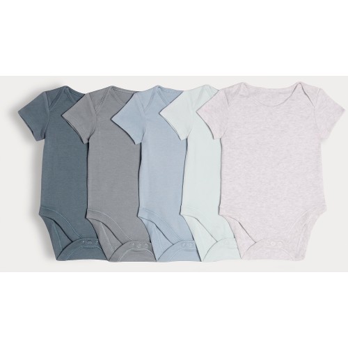 5-Pack Pure Cotton Short Sleeved Bodysuits in Blue
