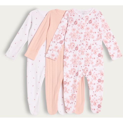 3-Pack Pure Cotton Floral Sleepsuits in Pink