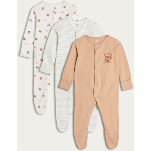 3-Pack Pure Cotton Breakfast Print Long Sleeved Sleepsuits in White