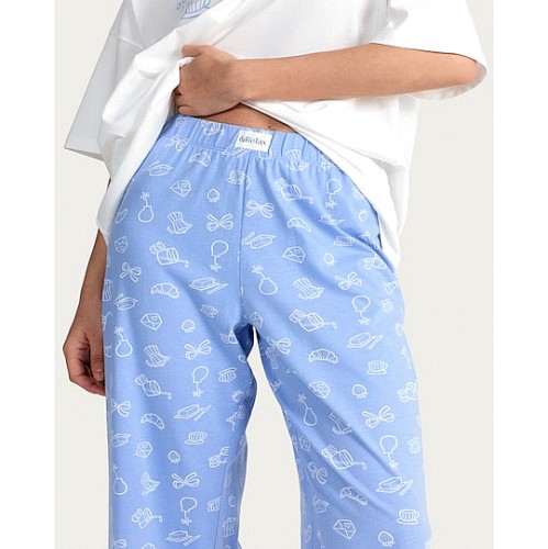 Pure Cotton Printed Pyjama Bottoms in Blue