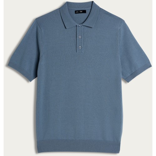 Pure Cotton Knitted Short Sleeved Polo Shirt in Blue