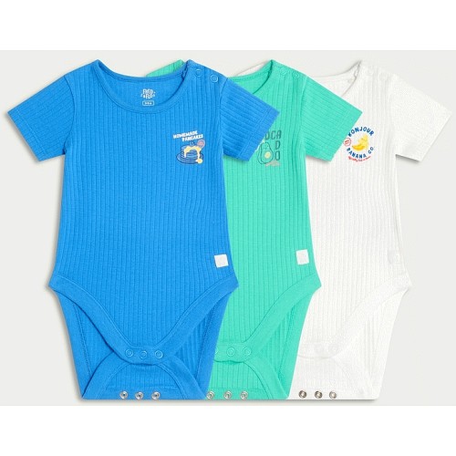 3-Pack Cotton Rich Fruit Print Bodysuits in Blue