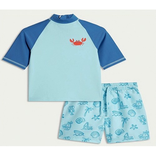 F&F Boys Crab Print Rash Vest and Swim Shorts Set in Blue
