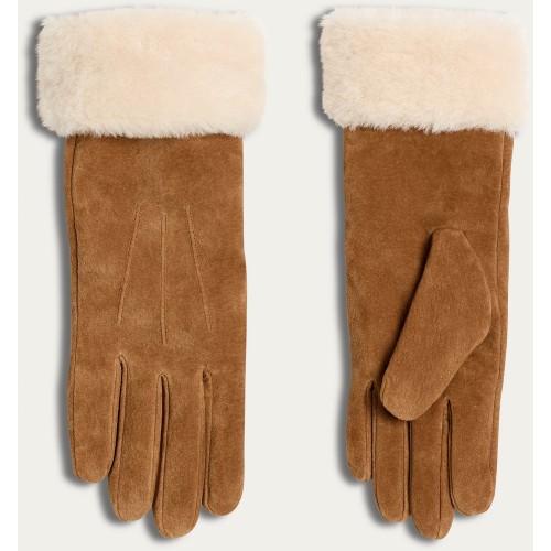 Suede Borg Trim Gloves in Tan