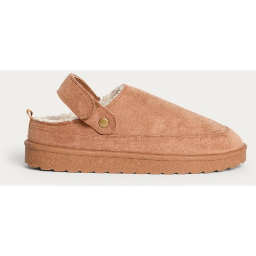 Faux Suede Borg Lined Chunky Mule Slippers in Tan