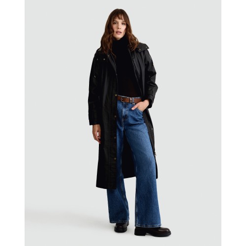 Shower Resistant Waxed Collared Longline Coat in Brown