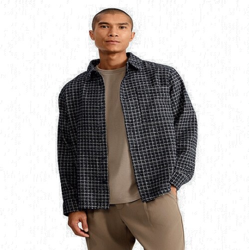 F&F Boys Brushed Check Print Hooded Shacket in Grey