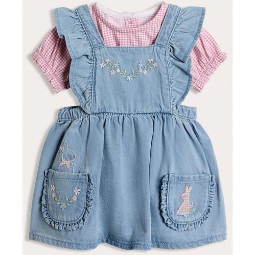 Pure Cotton Embroidered Bunny Pinafore Set in Pink