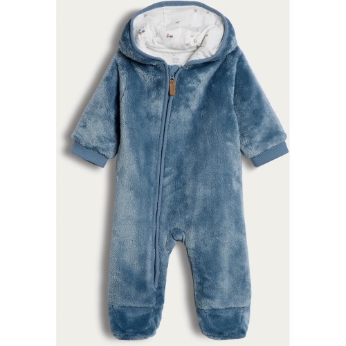 Cosy Fleece Zip Front Ear Hooded Pramsuit in Blue
