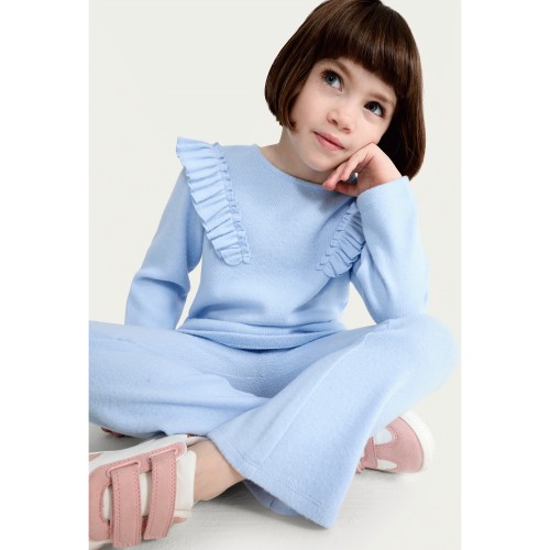 Cosy Textured Ruffle Top and Trousers Set in Blue